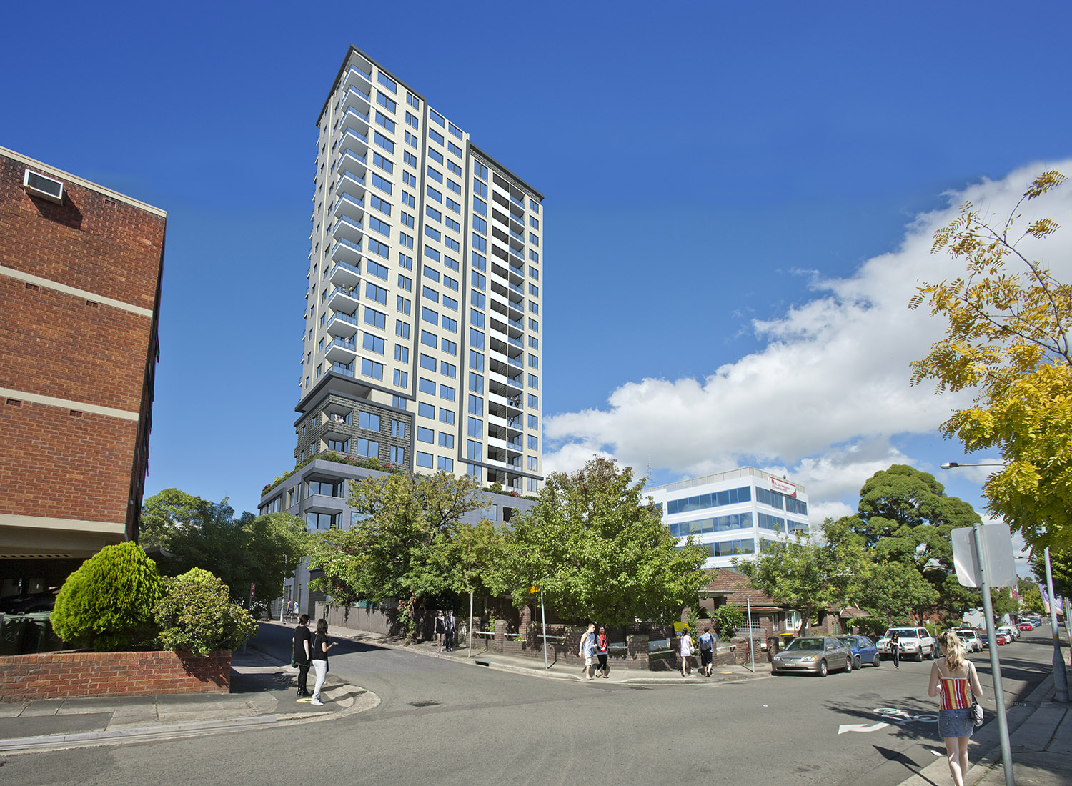 A proposal to construct a 21 storey commercial and residential building with 4 basement car parking. The building incorporates 3 commercial tenancies, 67 serviced apartments, and 34 residential apartments.