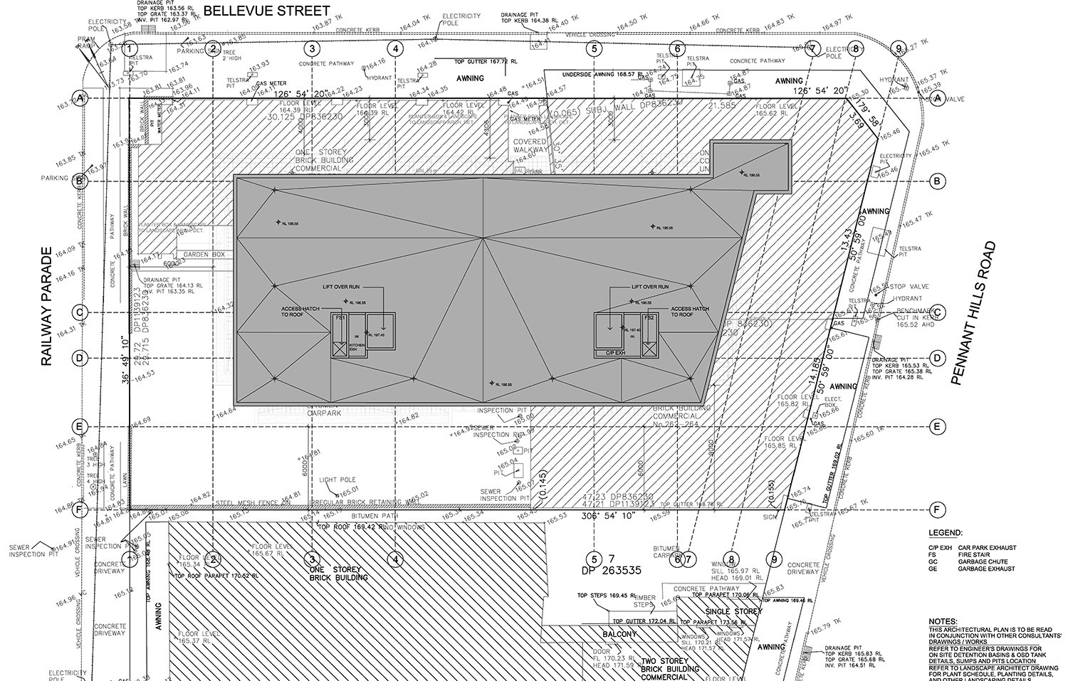 The proposed building is a 10-storey apartment building including nine residential storey, ground floor commercial with three basement carpark level, at 258-264 Pennant Hills Road, Thornleigh.